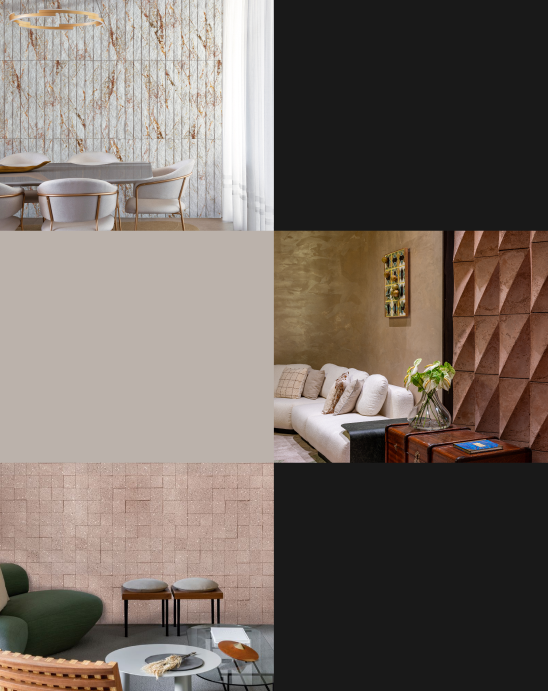Sempre atenta às tendências de design, seus produtos promovem um visual exclusivo aos espaços e permitem a personalização dos ambientes com diferentes usos e paginações.
